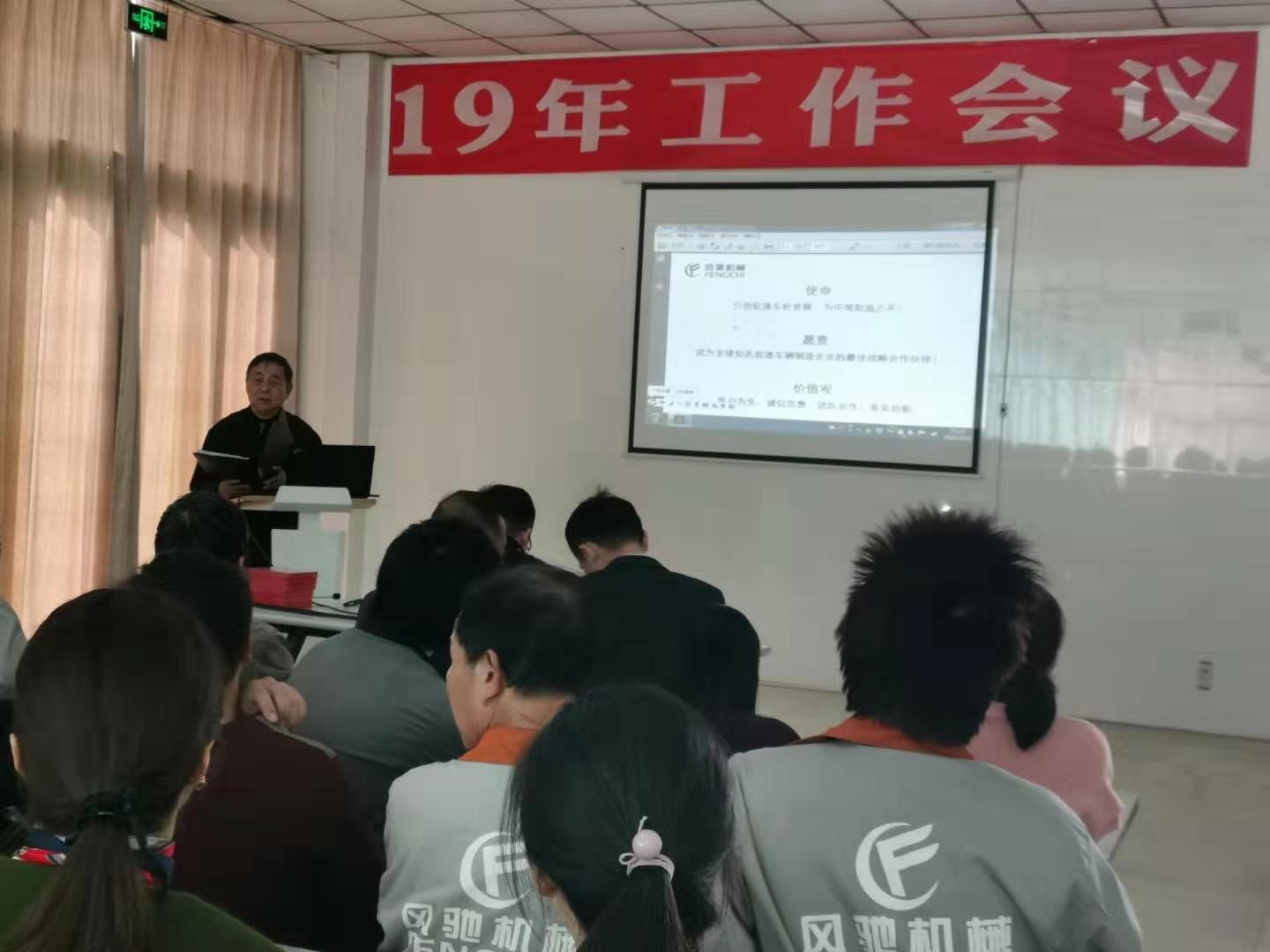 會議由風馳車輪公司副總經(jīng)理陳景賢主持,總經(jīng)理李正華總結了2018年的工作,部署2019的任務。李總在會上提到在美國發(fā)起貿(mào)易戰(zhàn),經(jīng)濟下行壓力增大的嚴峻形勢下,車輪公司經(jīng)過全體員工的共同努力,取得銷售增長二成的好業(yè)績,開發(fā)了鋁輪和工程圈兩項新產(chǎn)品,為今明兩年的發(fā)展打下扎實的基礎。2019年,我們更要凝心聚力,乘勝前進,出色完成“營業(yè)收入2500萬元,利潤指標9%,每萬元產(chǎn)值工資含量不超過14.5%,客戶投訴少于15起,有等級的工傷事故0起”的年度計劃目標,以此來感謝總公司的扶持和關懷。